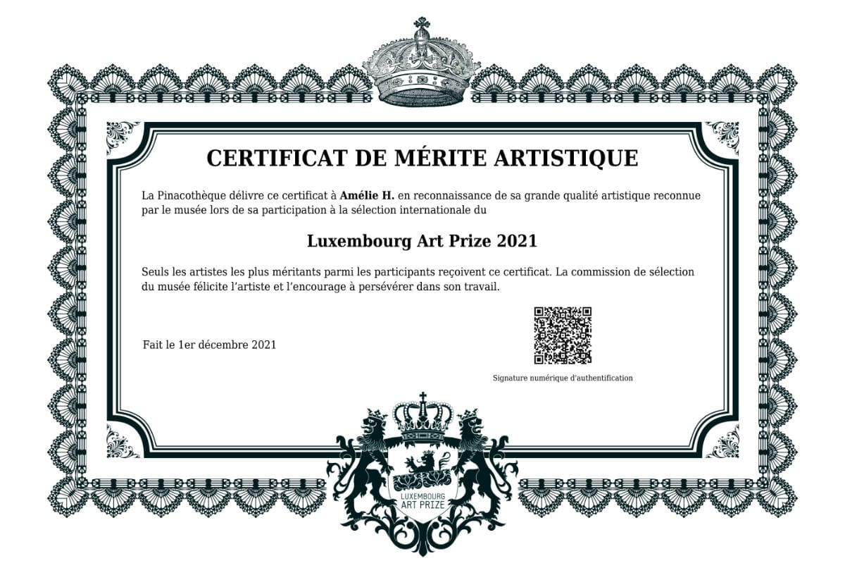 Certificat de mérite artistique – Luxembourg Art Prize – 2021