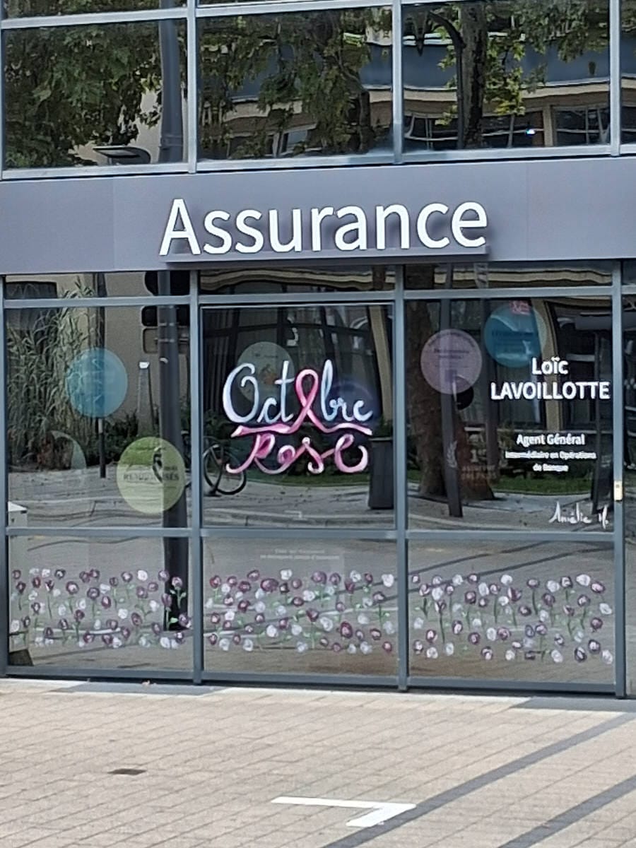 Peinture sur vitrine – Assurances Axa – Sarreguemines