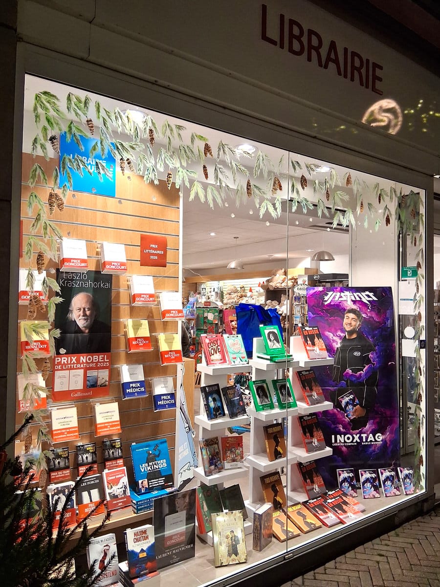 Peinture sur vitrine – Librairie Confluence – Sarreguemines